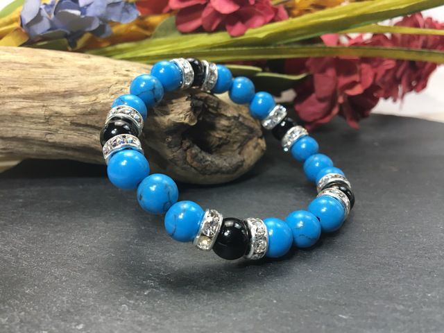 - ターコイズ&オニキス パワーストーン ブレスレット (シルバー) 開運 浄化 魔除け お守り 成功 繁栄 効果 レディース 通販 #1