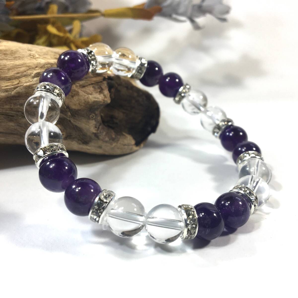 - アメジスト&水晶 パワーストーン ブレスレット 天然石ブレス シルバー 8mm /開運 浄化 4月 誕生石 クリスタル レディース 通販 #2
