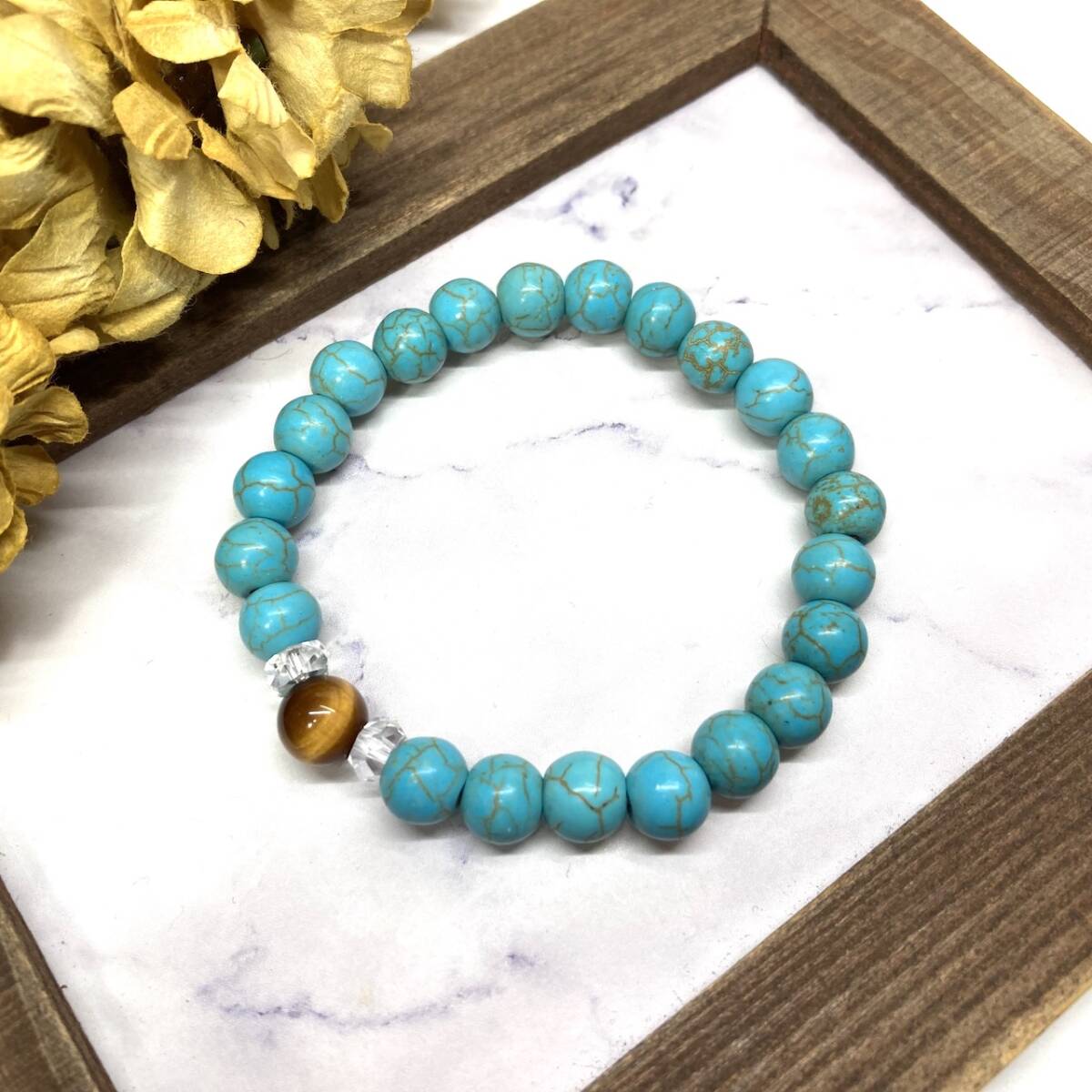 > タイガーアイ&ターコイズ ブレスレット パワーストーン レディース 女性 金運 仕事運 開運 浄化 数珠ブレス お守り