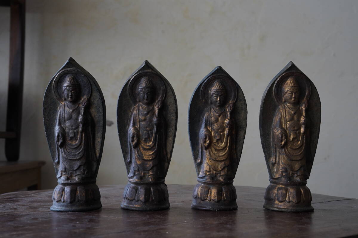 - 美術品 アンティーク コレクション 工芸品 観音像 立像 観音様 鍍金仏 観音菩薩 仏像 骨董 古玩 陶器 焼物 4セット セット