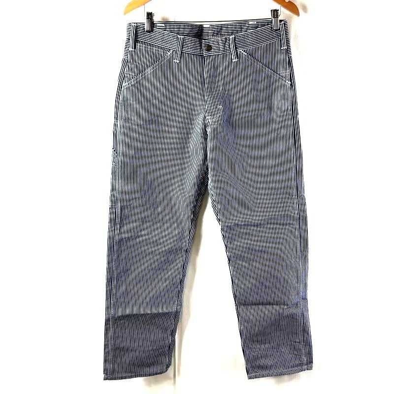 - リー Lee デニム ストライプ バックポケット ブランドボタン 紺 白 Lサイズ 2025090100339