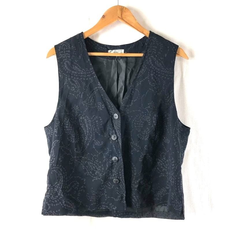 - Viale ベスト 柄プリント デザインボタン 裏地付き ブラック LLサイズ 2025090300142