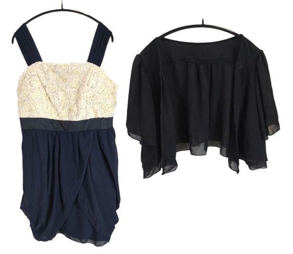 > SS2910◆ 新品 フォーマル ワンピース ボレロ 2点セット ベアトップ 花柄レース 裏地有り 袖ティアード 裾ティアード 19ABR84 ネイビー 黒