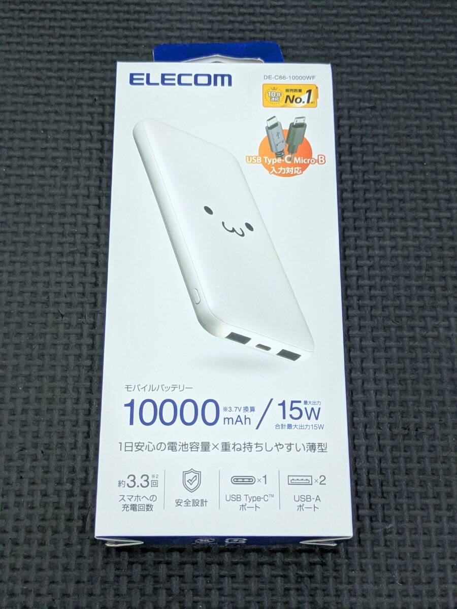 - ◎0709u3018 エレコム モバイルバッテリー 10000mAh 15W 3ポート しろちゃん(ホワイト×ブラック) DE-C66-10000WF