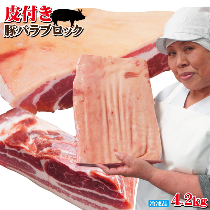 > 皮付き豚バラブロック4.2kg冷凍手にはいらない希少 3枚肉 角煮や東坡肉【国産に負けない味わい】【ばら肉】【ベーコ