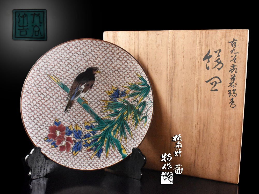 - 【雲】某名家買取品 秀逸 九谷 徳田八十吉 色絵瑞鳥文飾皿 直径27cm 共箱 古美術品(旧家蔵出)CY376 PTcvfd