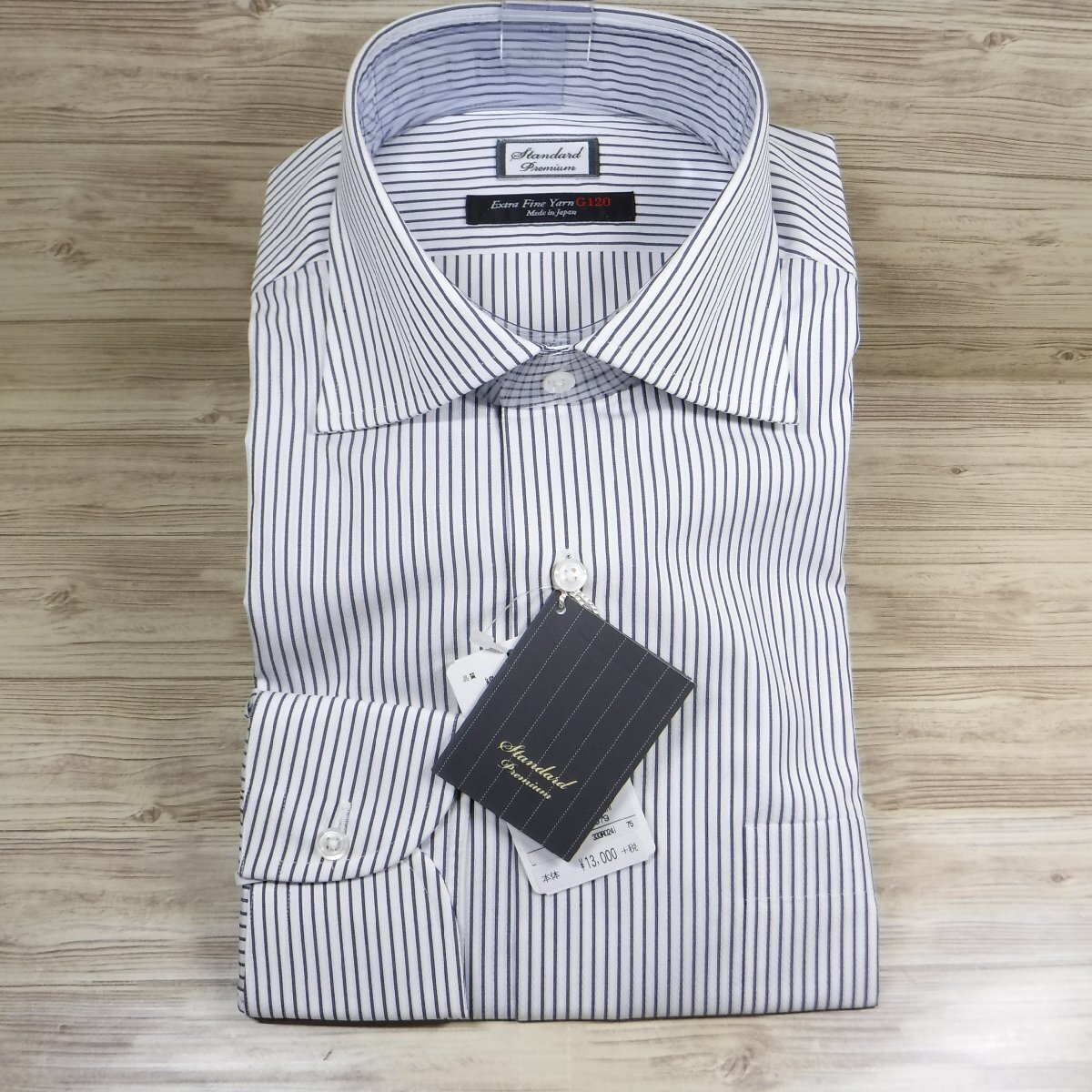 - TT161 阪急百貨店 スタンダード 定価14300円 日本製新品 白 ストライプ ワイドカラー 形態安定 長袖ドレスシャツ 39-80 M ワイシャツ