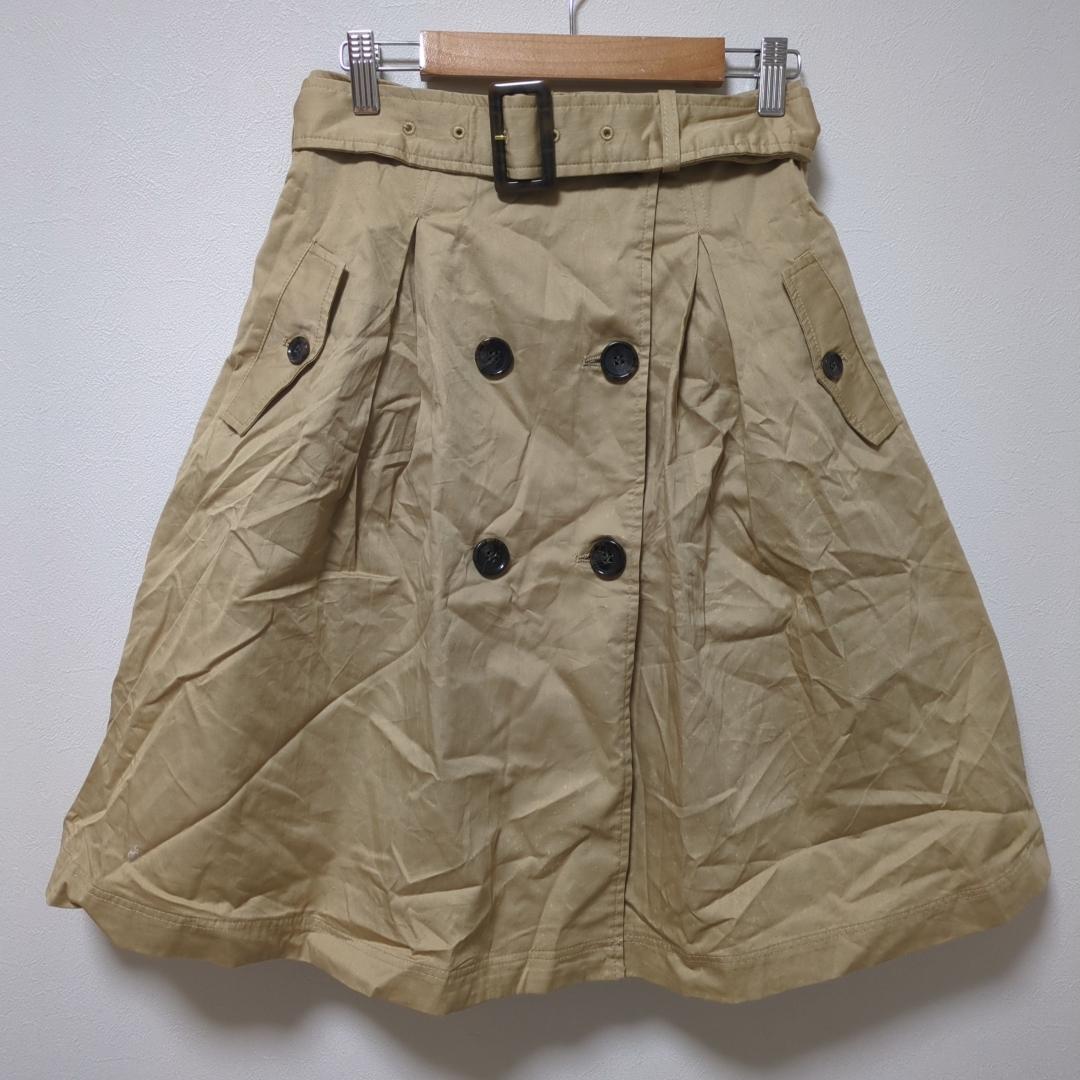 - ジーナシス(F)ベルト付ひざ丈フレアスカート*綿100%*ポケット*ベージュ