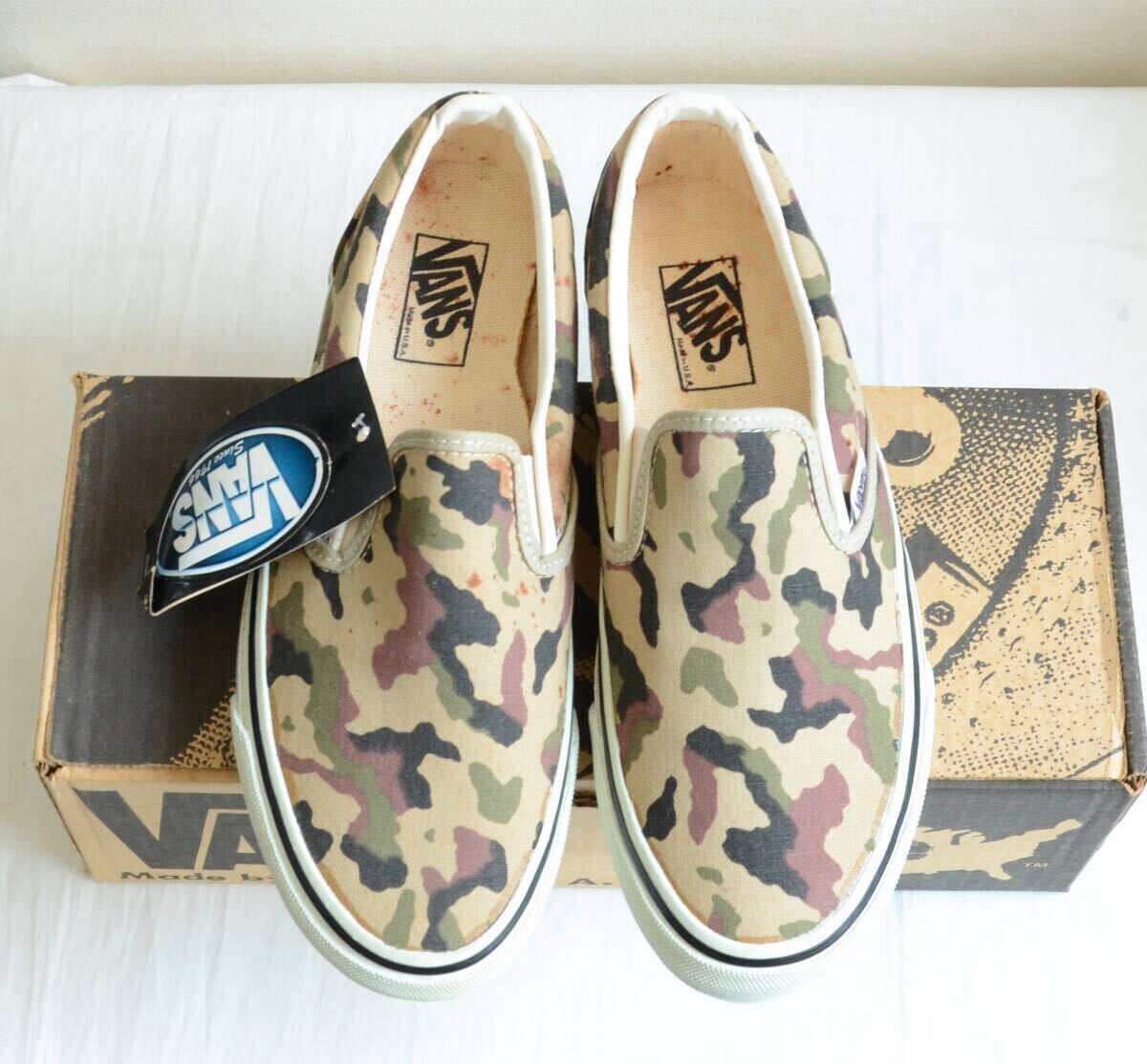 > デッドストック 未使用 90sビンテージ USA製 VANS スリッポン 迷彩 カモフラ size US8 保管汚れあり
