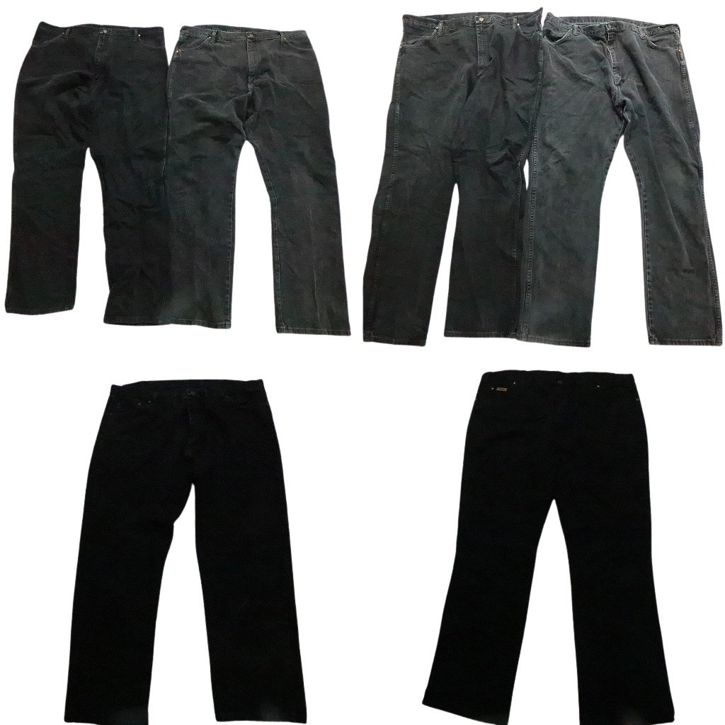 > 古着卸 まとめ売り Wrangler ラングラー ブラックデニム パンツ 6枚セット (メンズ 42 /44 /46 ) 革パッチ フェード 中古 古着 NC1281