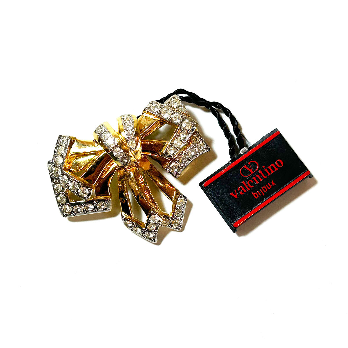 - Valentino ヴァレンティノ ヴィンテージ ブローチ リボン ゴールド ラインストーン
