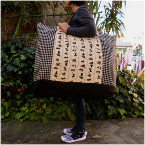 - 入学、入園!3200円黒猫ミュージック特大布団バッグ 手作り小物