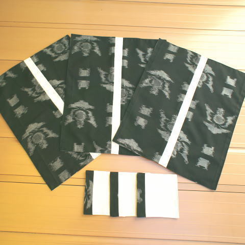 - 【手作り小物】2300円絣文ランチョンマット3枚とコースター3枚セット
