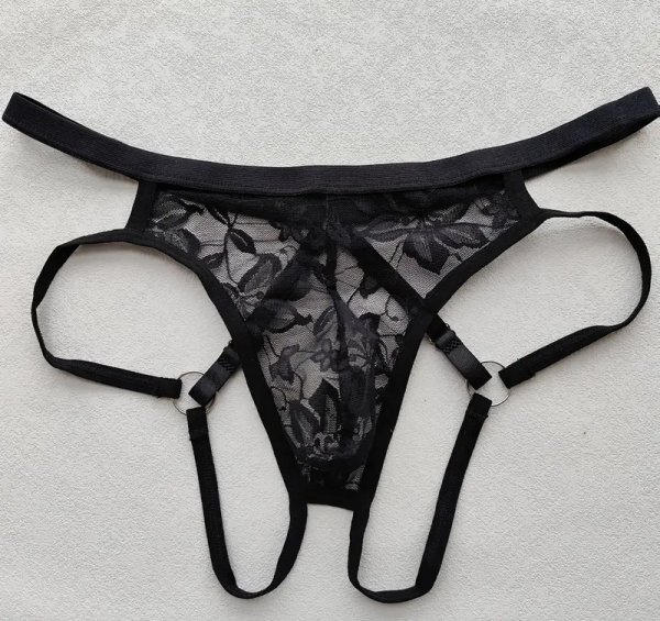 > メンズ フルシーム 花柄レース メッシュ バックリングアジャスター オープンダイヤモンドバック ビキニ ブラック 日本Fサイズ