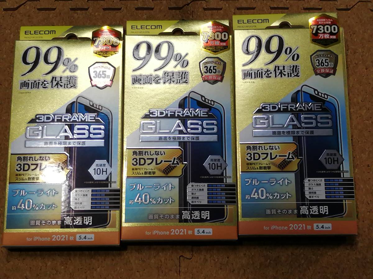 - 【3枚】エレコム iPhone 13 mini 5.4inch 用 ガラスフィルム カバー率99% フレーム付き ブルーライトカット PM-A21AFLKGFBL 4549550226455