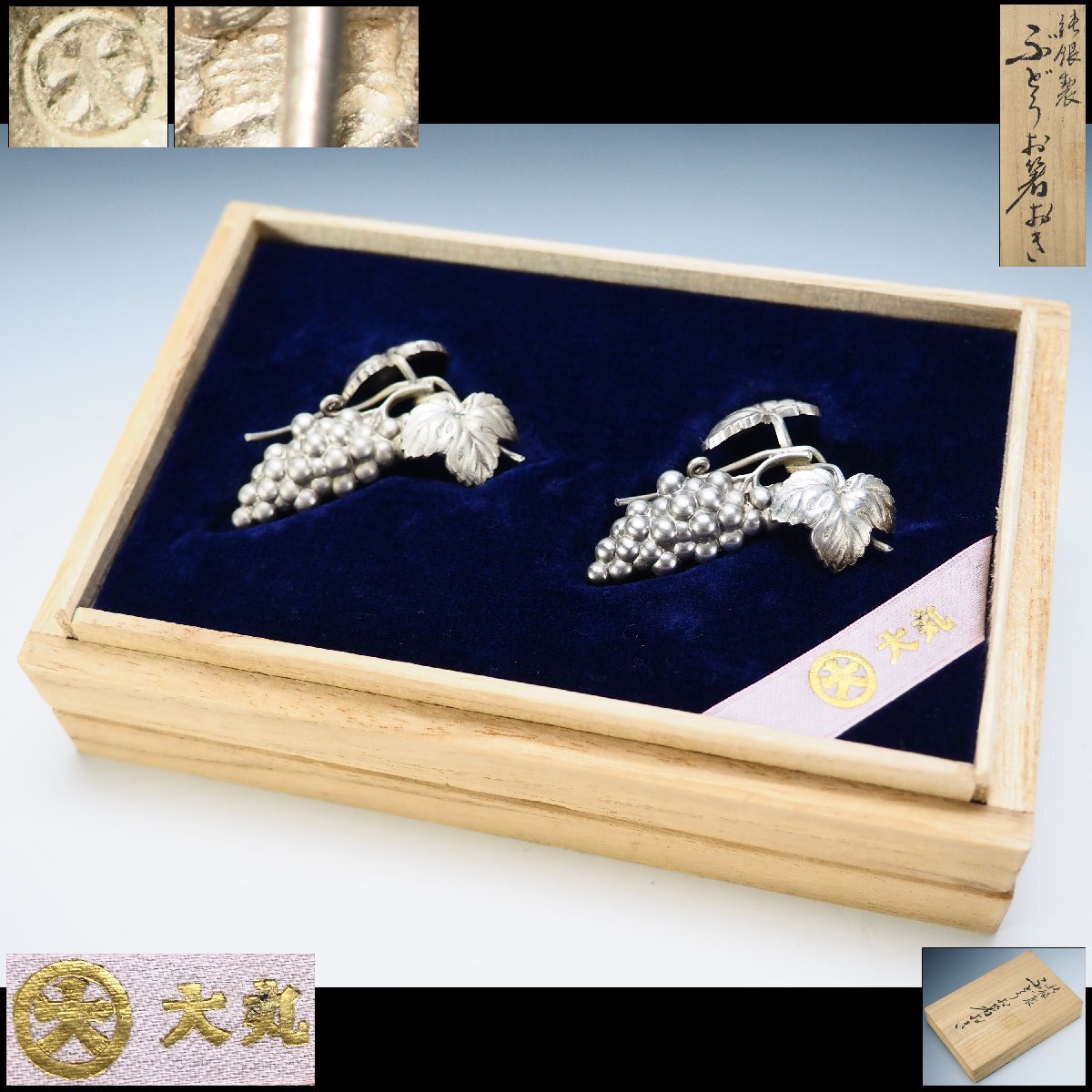 > 【治】大丸百貨店謹製 銀製 葡萄形箸置一対☆元箱付 銀重32g 小物 金工置物 オブジェ 金具 筆置 カトラリ silver 銀食器 銀器 PB453