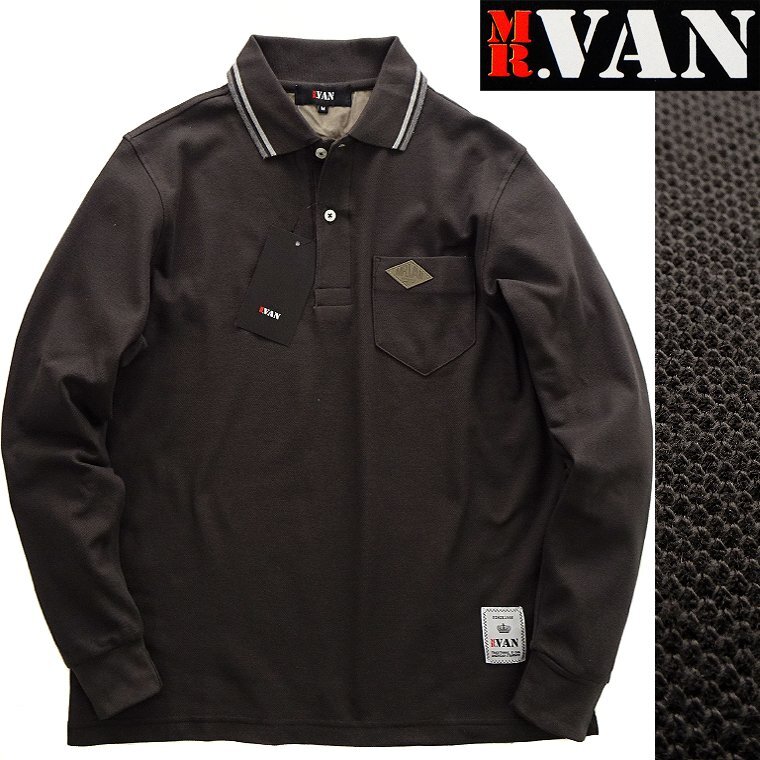 - 新品 MR.VAN ミスターヴァン 2023秋冬 ライン 鹿の子 ポロシャツ L 茶【va1933052_19_L】 長袖 カノコ シャツ メンズ トップス カジュアル