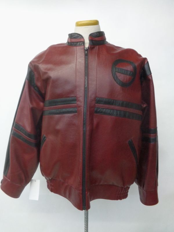- メンズ バーガンディレッド&ブラック レザー・ジャケット アメリカンサイズ42-44