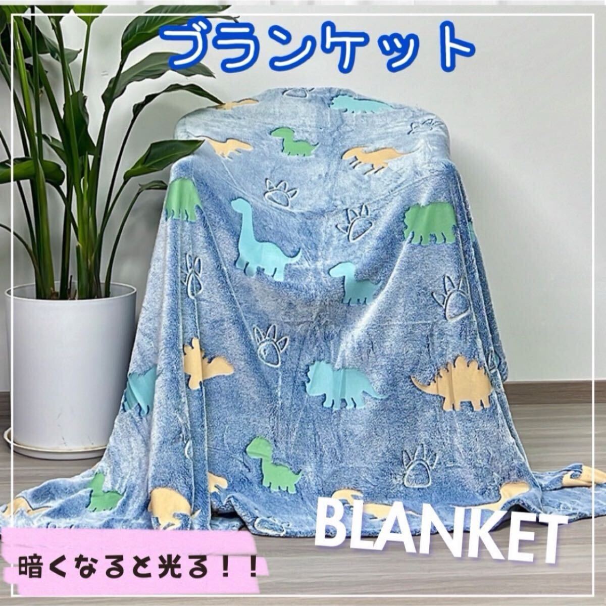 - 光る 可愛い かっこいい カラフル 恐竜 ダイナソー 男の子 男子 子供 ブランケット 大判サイズ ブルー