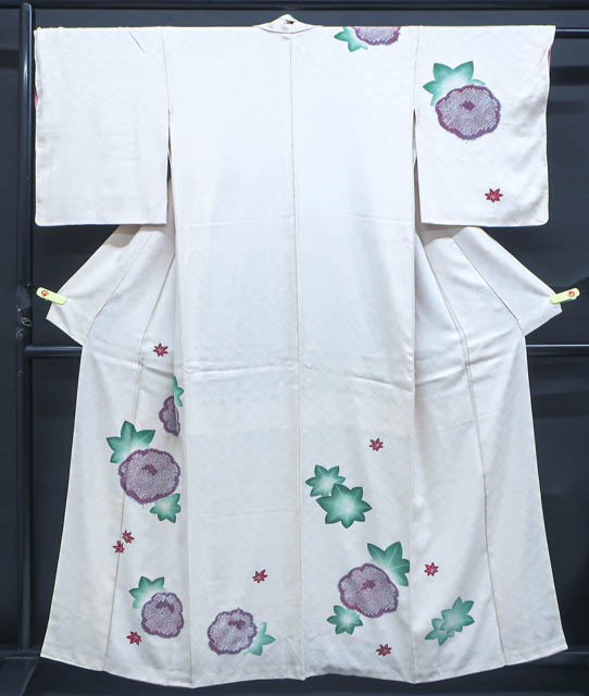- 《京都一輝堂》【着物】アンティーク 付下げ 檜垣地紋に花文 身丈約161cm 裄丈約63cm 24Z-469