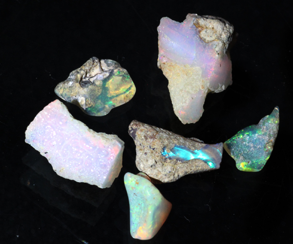 - 激安】天然ファイアーオパール原石研磨・未研磨 6Pcs 9.15ct エチオピア【265-8】