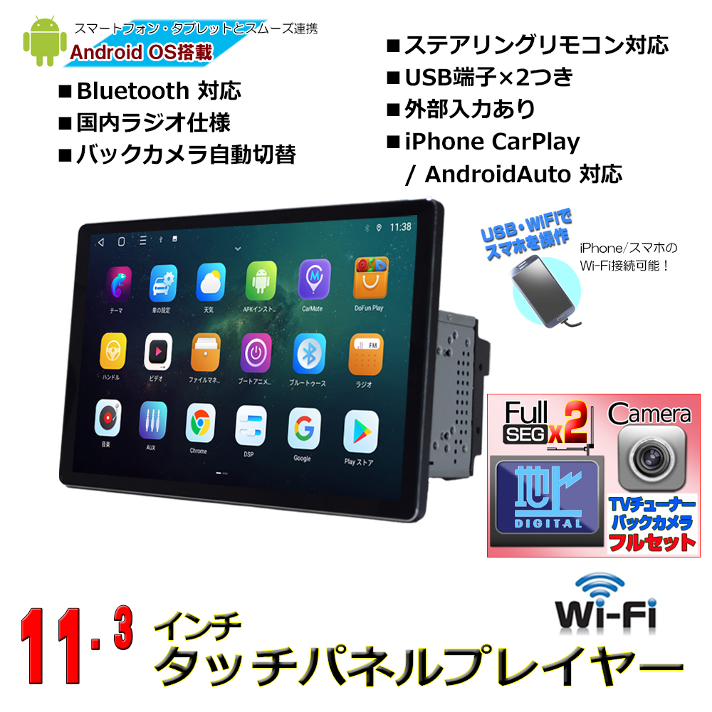 - 2DIN11.3インチタッチパネル+170度バックカメラセット+地デジフルセグチューナーRAM6GB+ROM128GB iPhone Carplay android auto