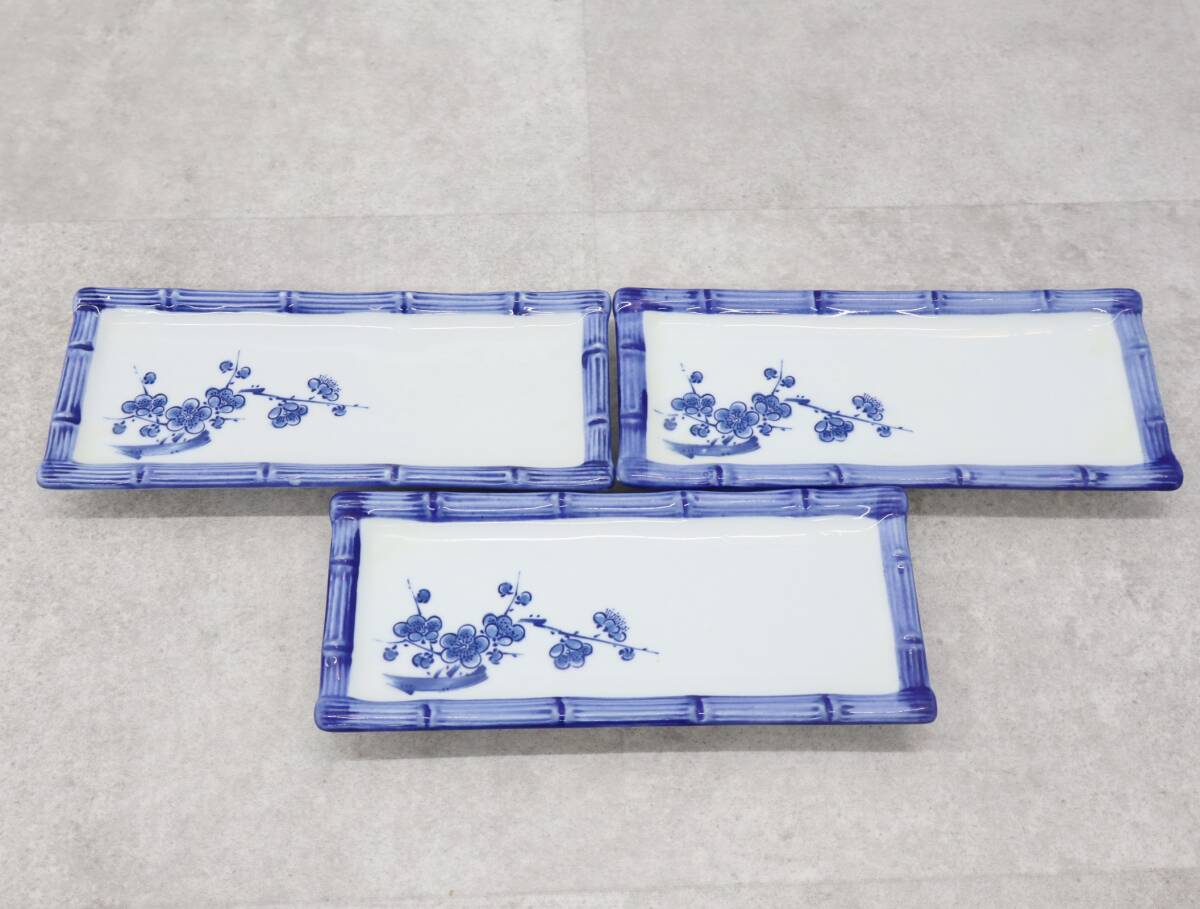 > ◇陶磁器 料亭 約22.5×9.5cm|平皿 3皿 まとめ 梅| 飲食店 食器|平皿 皿 和柄 日本料理 懐石料理 料亭 割烹 旅館 USED■O7515