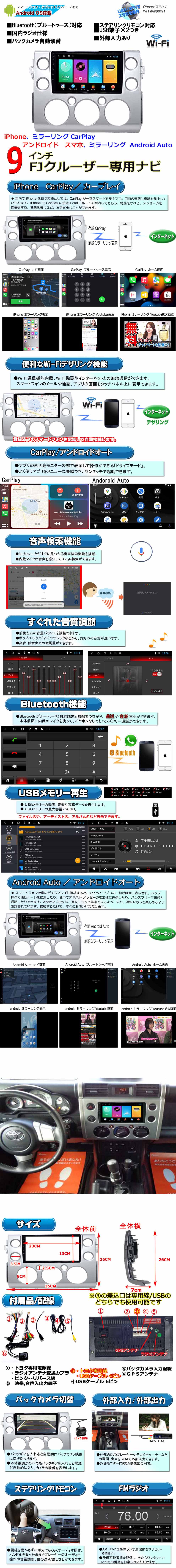 - FJクルーザー専用9インチナビパネルアンドロイドカーナビディスプレイオーディオiPhoneCarPlayスマホandroidautoミラリングRAM2GROM32G