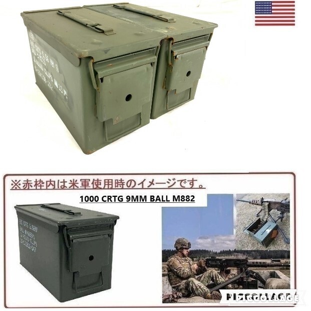 - 【米軍放出品】アンモボックス アンモ缶 2個 ミリタリー アーモ缶 アモカン 1000 CRTG 9MM BALL M882 弾薬箱 (100)HI29KK#25