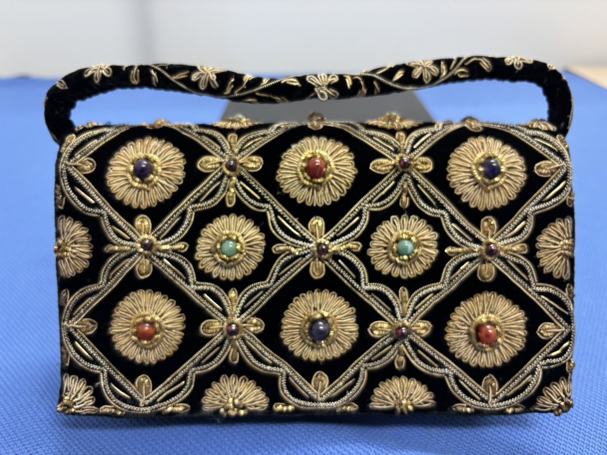 - 698☆【希少・レア】 インド セカンドバッグ/ザリ刺繍/天然石/クラッチバッグ/アンティーク/ビンテージ/高島屋/ 未使用