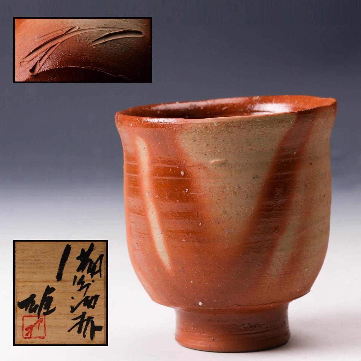 【佳香】人間国宝 藤原雄 備前緋襷ぐい呑 共箱 共布 栞 本物保証拍卖