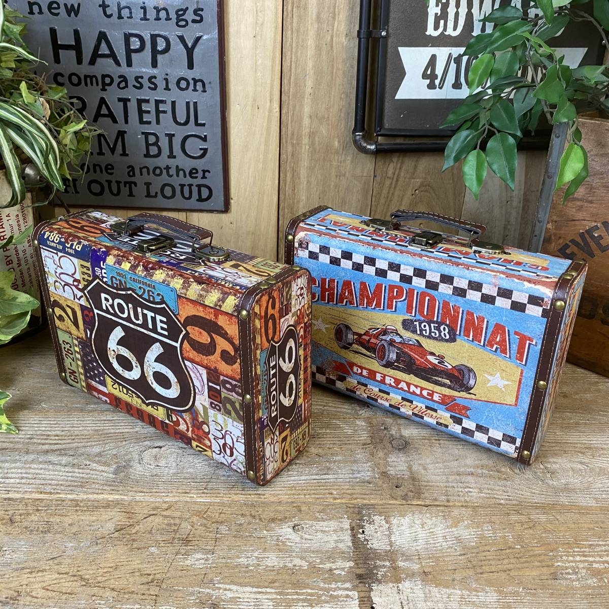 > 送料無料アンティークヴィンテージ調トランク型レザーケース二点セット(ミニ)収納BOXインダストリアルレザーボックス、小物入れ