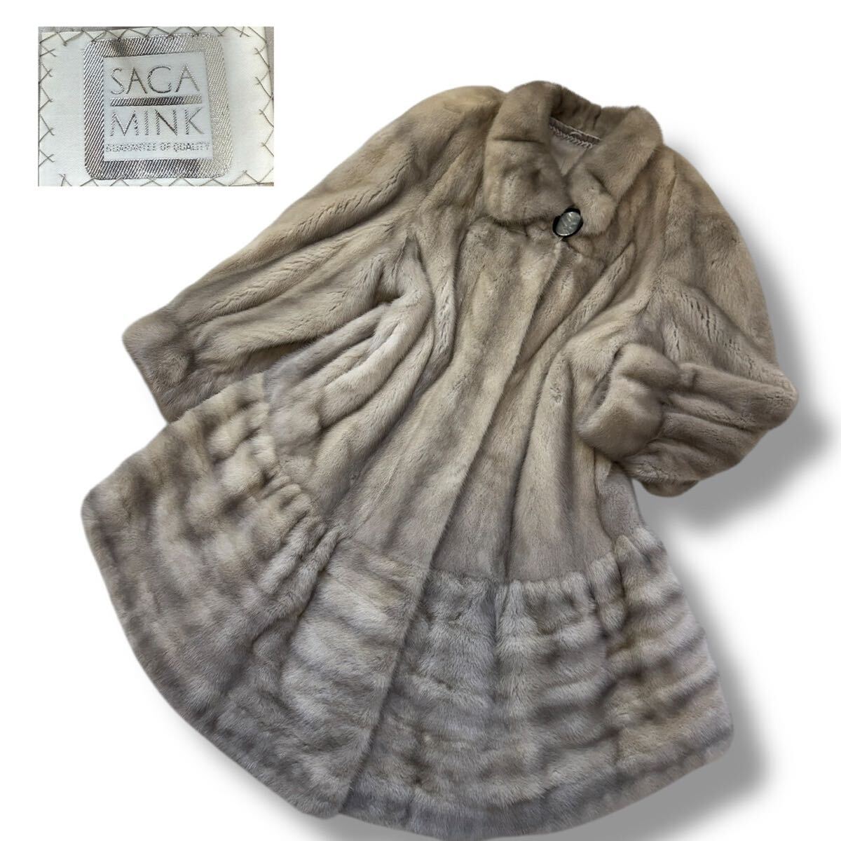 > 996 希少デザイン◎サガミンク saga mink サファイアミンク 着丈約100cm ロングコート 本毛皮 リアルファー サファイヤ 貂 グレー フレア
