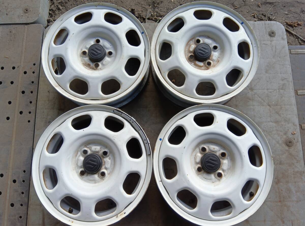 > No.2155【スズキ純正 15インチスチールホイール】15×4.5 PCD100 4穴 OFF不明 軽自動車等