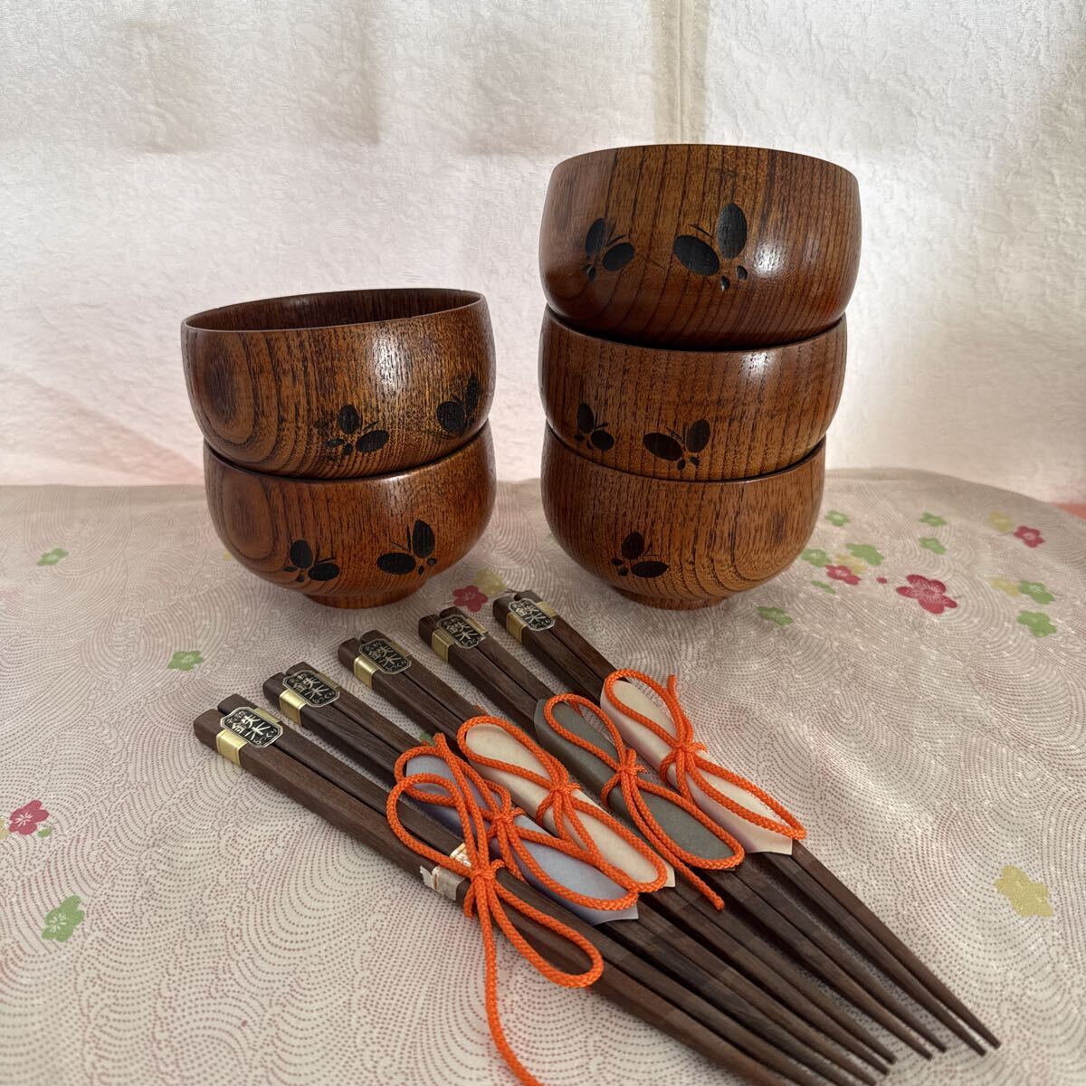 - お椀 お箸 5客セット 鉄木箸 汁椀 和食器 箸 木製