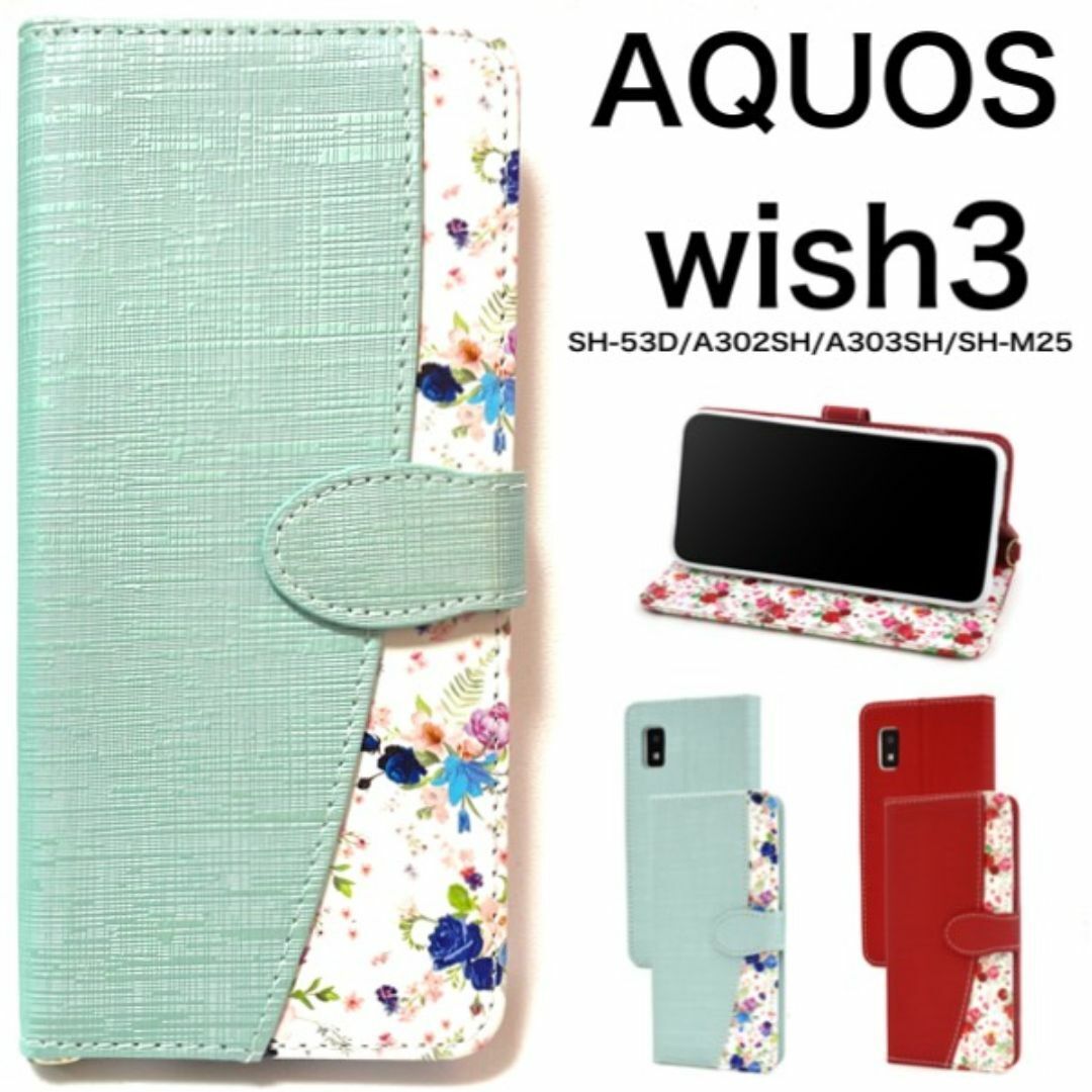 - AQUOS wish3 SH-53D/A302SH ハッピーブーケ手帳型ケース/ アクオススマホケース
