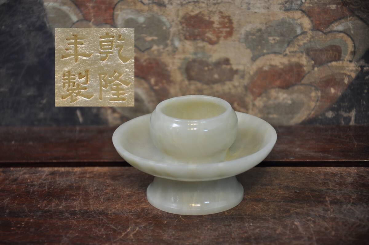 - 乾隆年製 白玉石彫刻建托 中国美術唐物煎茶道具