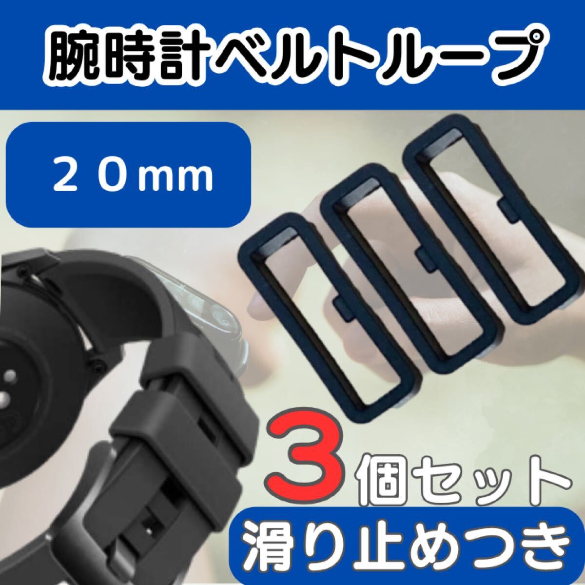 - 腕時計 ベルト ループ ブラック 交換 シリコン ラバー バンド 修理 DIY 後付け 20mm 黒 滑り止め 防水 男女兼用 スポーツ 互換 ラバー 遊環