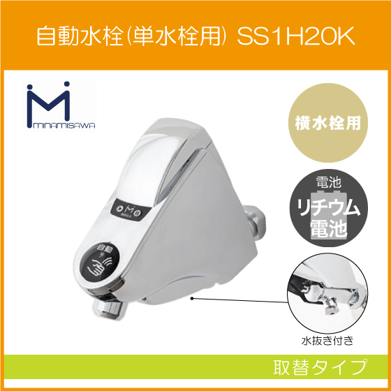 - 自動水栓 センサー水栓 横水栓用 取替タイプ(水抜き付き) SS1H20K ミナミサワ SuiSui SINGLE スイスイ