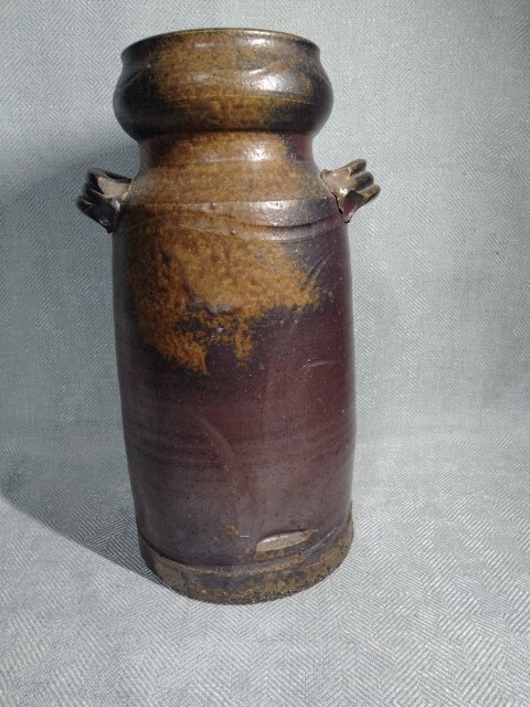 - 備前焼 花器 花瓶 花入 唐桶 報徳 24x9cm 置温