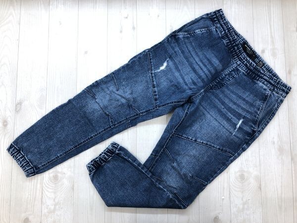 > ベルシュカ Bershka Denim ザラ ZARA サーフ バイカー クラッシュ・グランジ加工 テーパード イージーデニム パンツ ボトムス メンズ XS 青