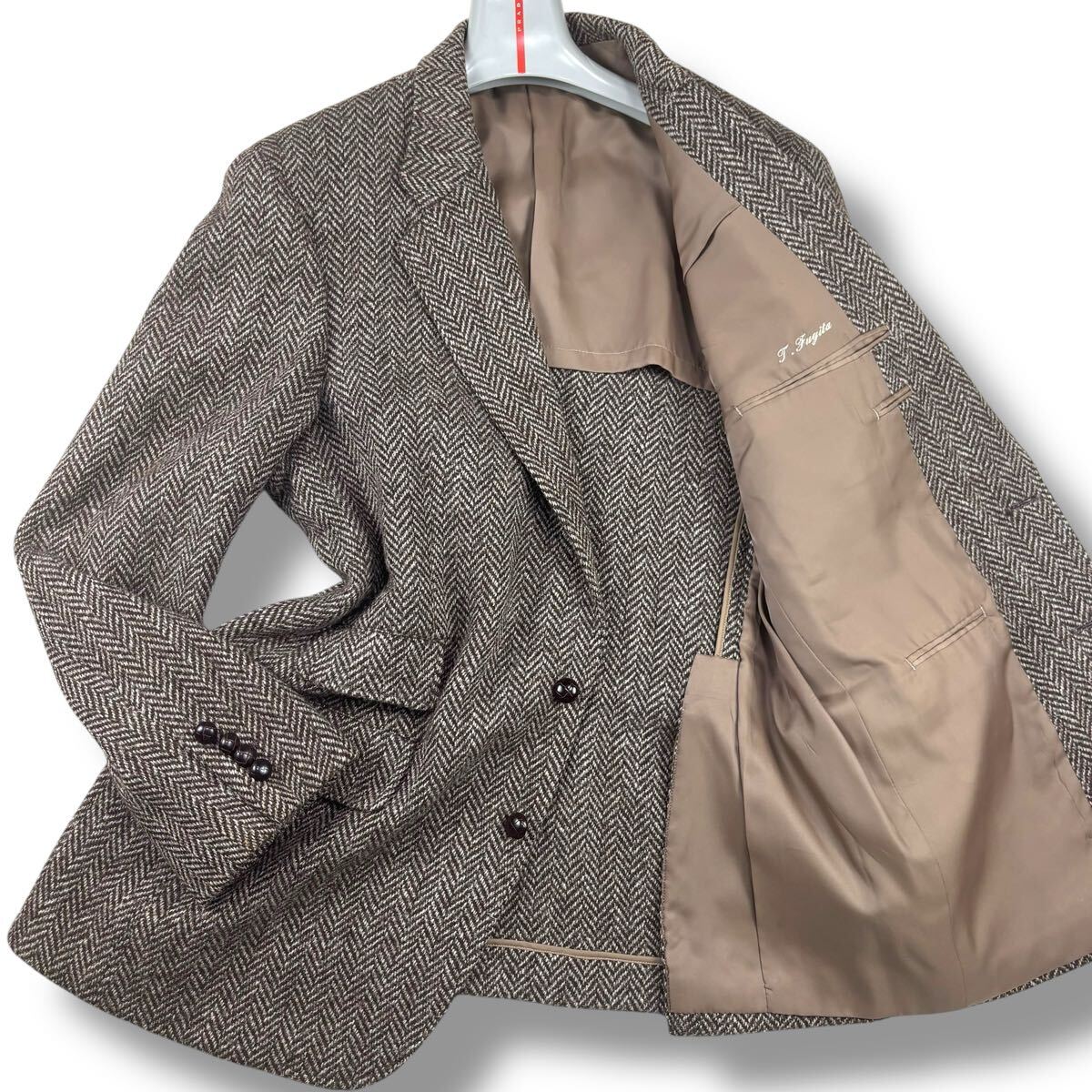 > 1円 未使用級 L~XL.LL エディントン Edington テーラードジャケット 2B ツイード ヘリンボーン くるみボタン 日本製 メンズ BE6 ブラウン系