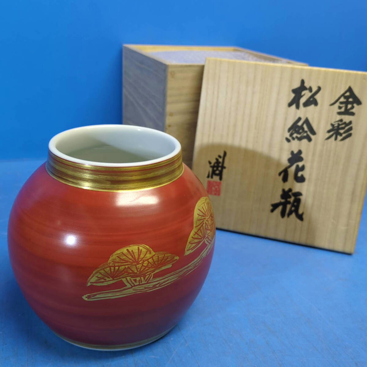 - kankando『近藤濶 金彩松絵花瓶』高さ14cm サイン入 共箱《真作》