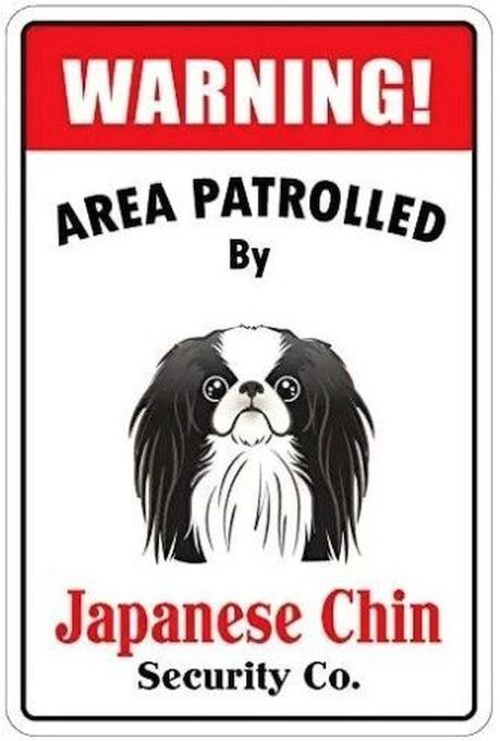 - 【送料無料】Japanese Chin ジャパニーズ 狆 ④ 要注意 メタルサインプレート【新品】