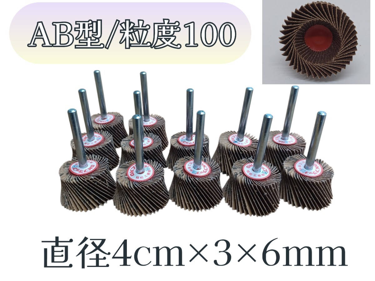 - 岩⑧)軸付きフラップホイール AB型 12個セット 粒度100番 フラップホイール OKフラップ グラインダー 研磨 研削 工具 251002(N-1-3