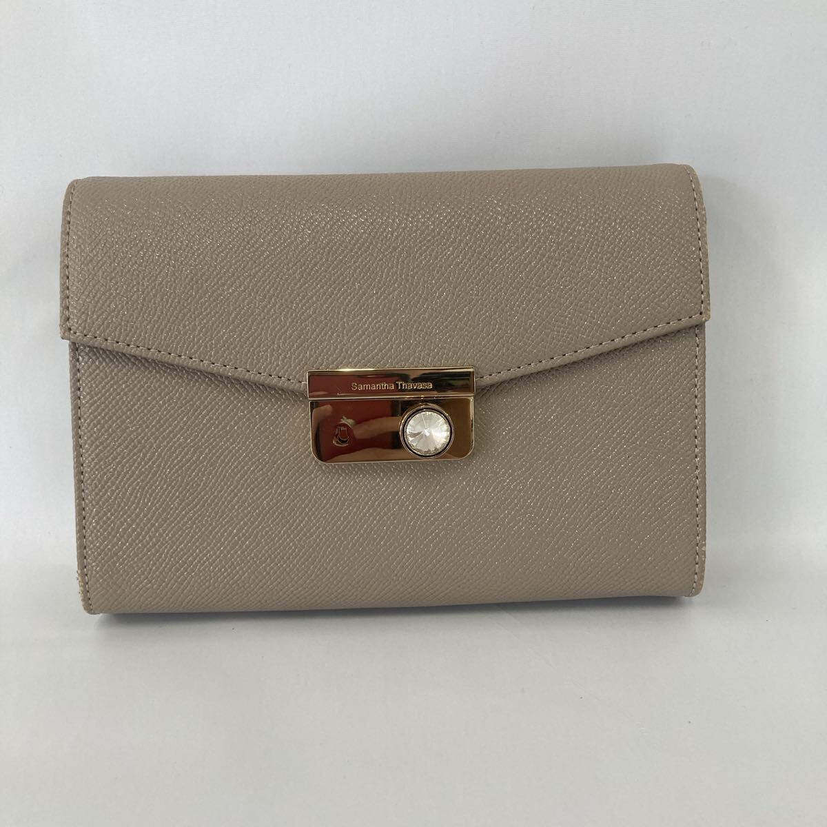 - 極美品 サマンサタバサ Samantha Thavasa チェーン レザー ショルダーバッグ ベージュ グレージュ ゴールド金具