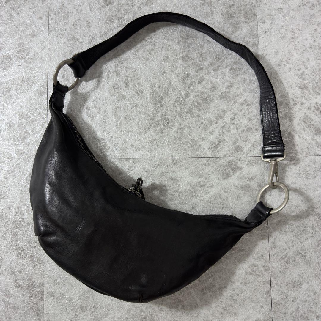 - 美品 ISAMU KATAYAMA BACKLASH イサムカタヤマバックラッシュ カーフレザー バナナショルダーバッグ 黒 ブラック ワンショルダー 肩がけ