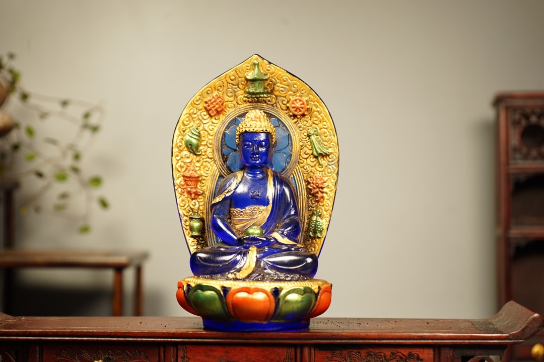 - 『館蔵珍品 琉璃製 細密彫 描金 彩繪 三寶仏 仏像 宗教 仏教古美術 供養品』稀少珍蔵品 古賞物 貴重物品 収蔵品 中国古美術 時代物 古董品