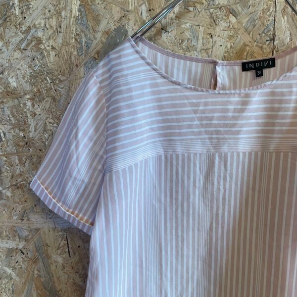 - [KWT4557] INDIVI 半袖トップス レディース ピンクストライプ 38 ポス