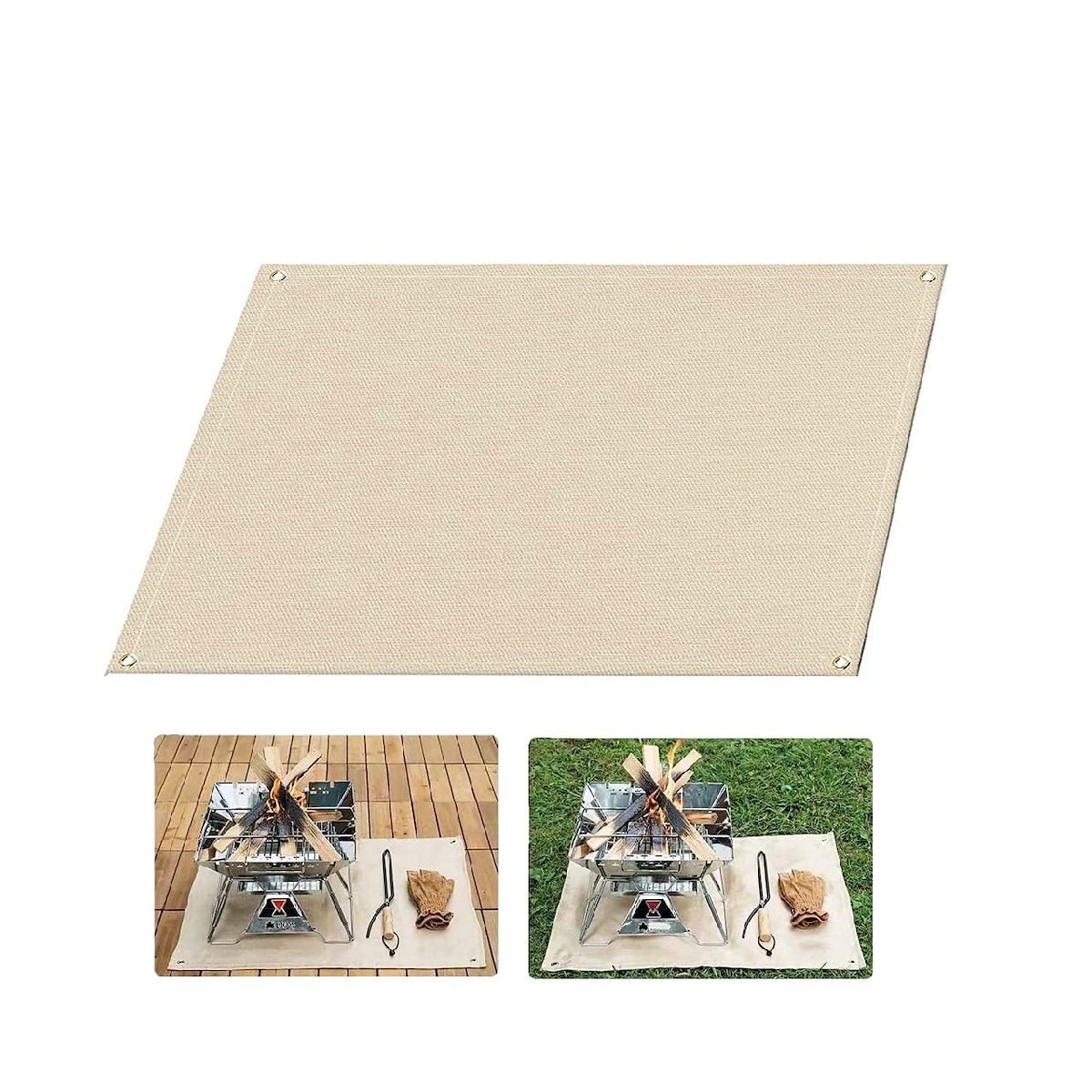 - 焚き火シート スパッタシート 焚き火台シート 耐熱 防炎 耐火シート ガラス繊維 キャンプ 芝生保護 薪ストーブ焚き火用 収納袋付き 100*80